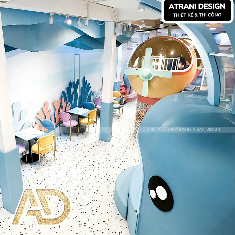 - Tính thẩm mỹ cao: Sự phối hợp màu sắc theo chủ đề (Đại dương, Rừng xanh, Vũ trụ…) tạo nên một khung cảnh hoành tráng, là điểm nhấn thu hút khách hàng ngay từ cái nhìn đầu tiên.